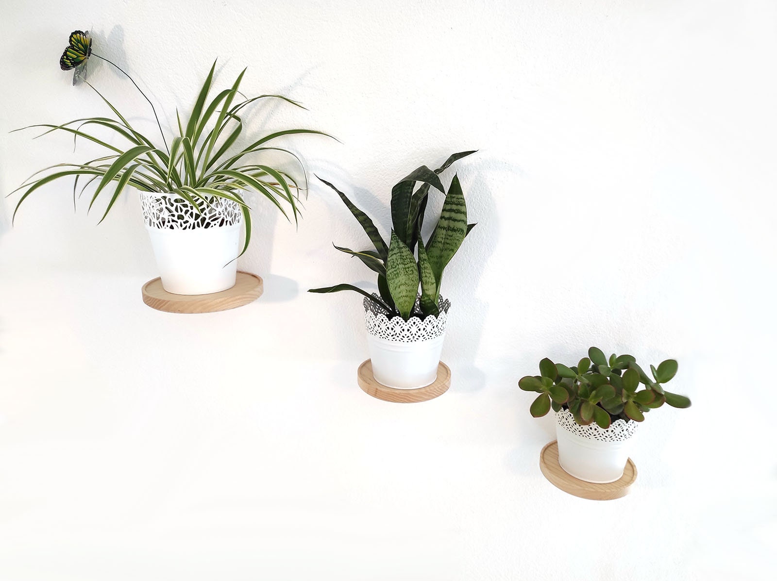 Simple installation. All you need is a drill (NOT included). Put the double-sided screw into the shelf by hand – Drill a hole – Insert the drywall anchor – Screw the shelf into the anchor by hand.